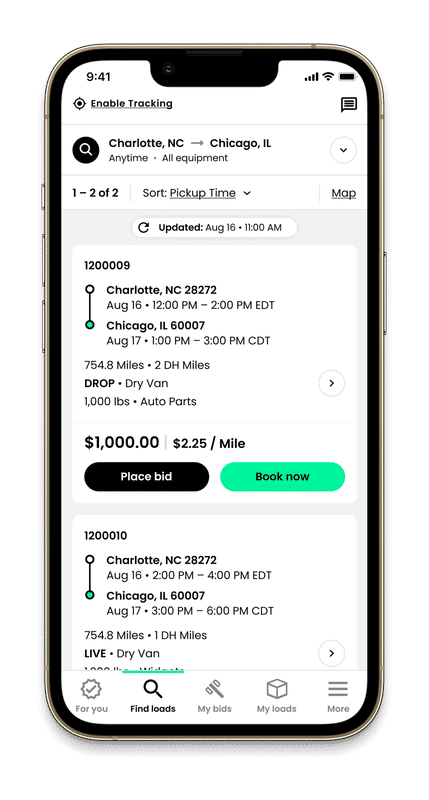 - Auction-Like Bidding: For ‘Bid Only’ loads, participate in auction-like negotiations to compete for the best opportunities.