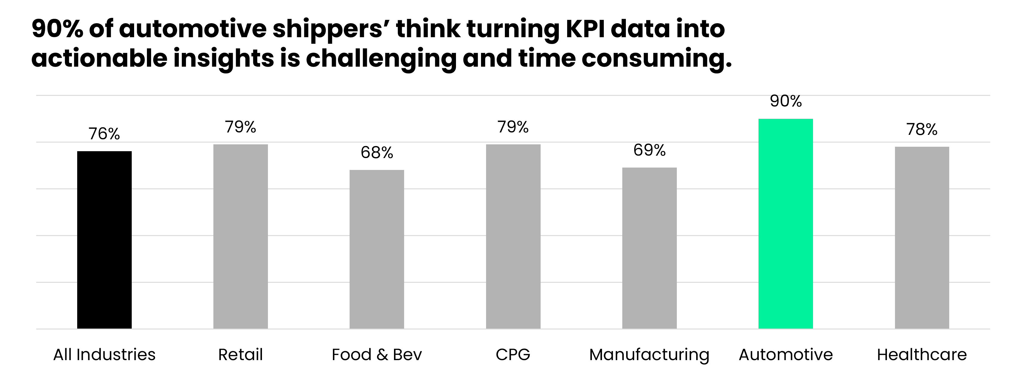 90% of automotive shippers agreed that turning logistics KPIs in actionable insights is both challenging and time consuming, 14% above the average and the highest of any industry.