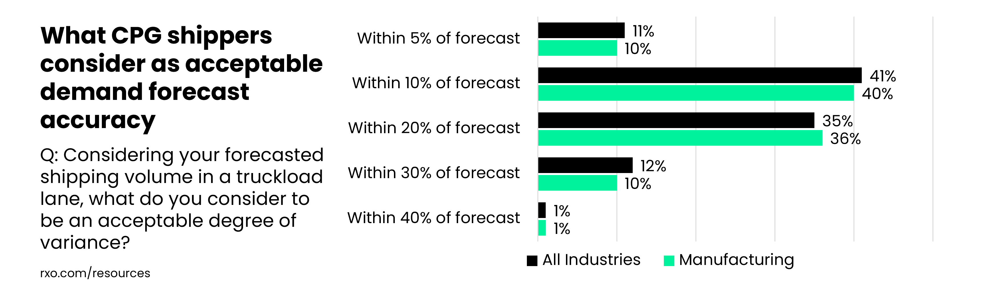 - CPG shippers’ standard: Within 10% of forecasted volume