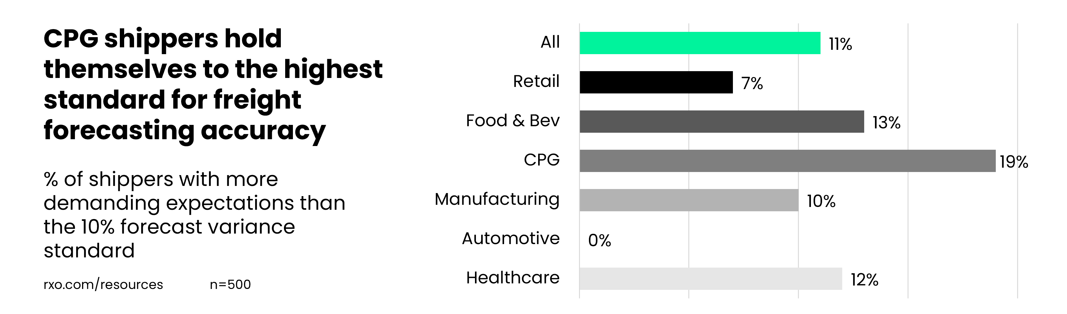 Looking at industry-specific insights, consumer packaged goods shippers held themselves to the highest standard, with 19% exceeding the industry standard.