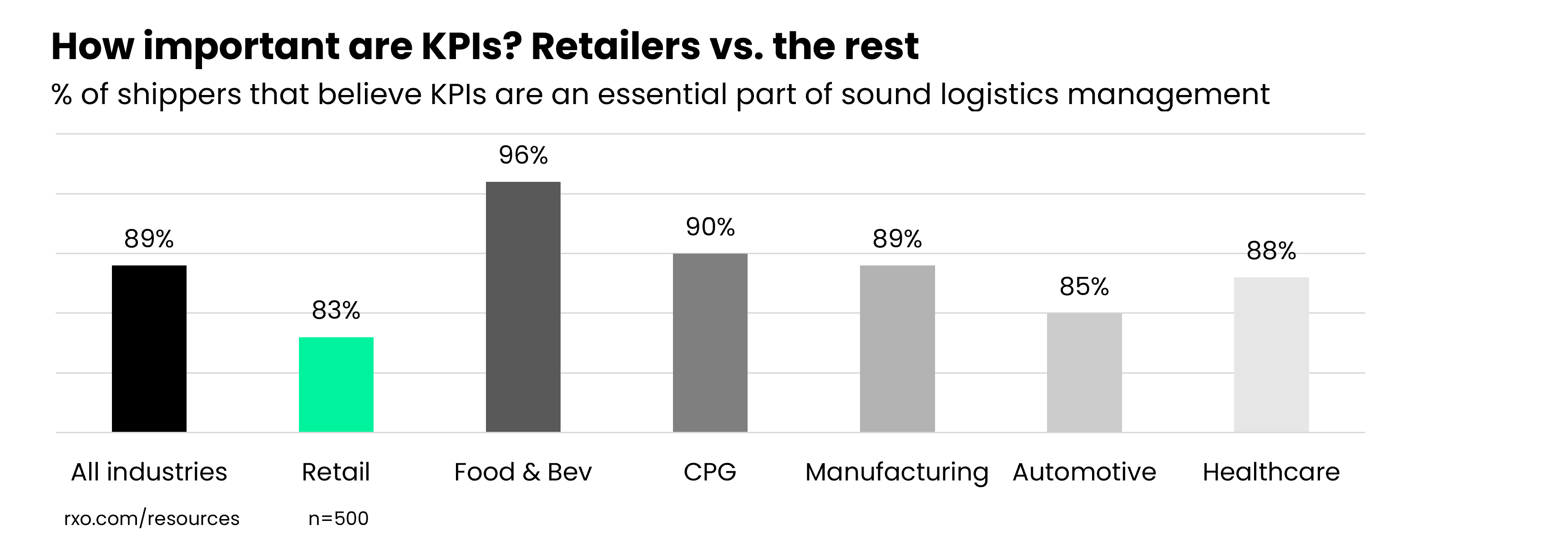 While 83% of retailers thought KPIs were an essential part of logistics management, that figure was 5% below the average and the lowest out of any industry (the leader was food and beverage shippers at 96%).