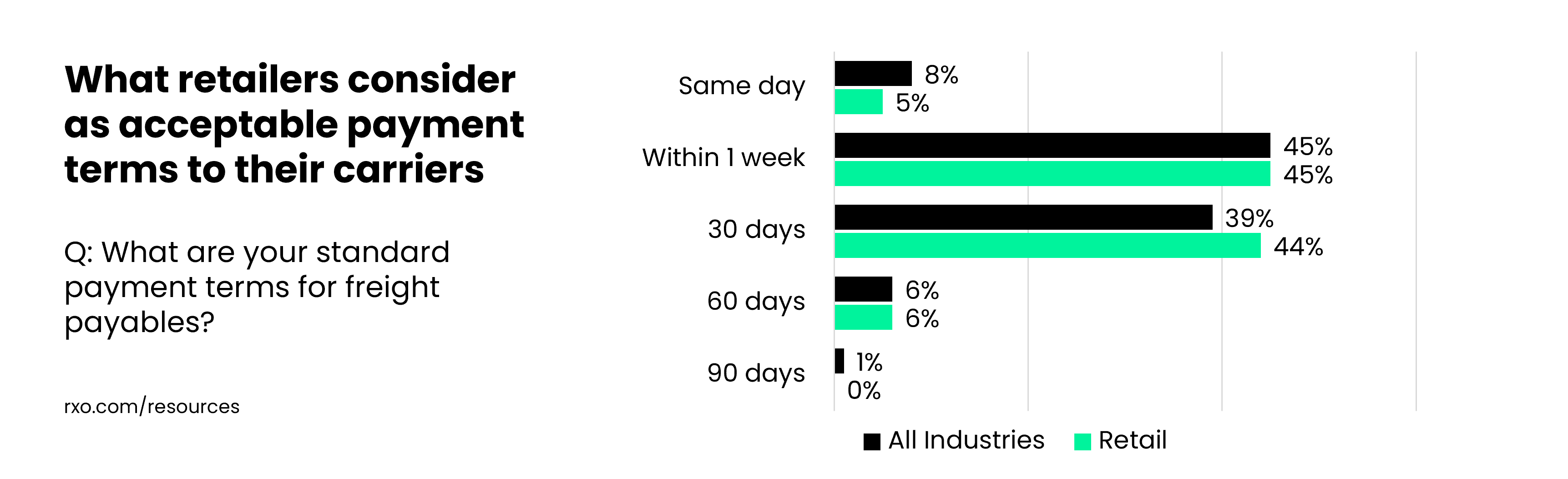 We asked retailers what they consider to be acceptable payment terms to their carriers. Here’s what they had to say, and how it compares to average across all industries in the study.