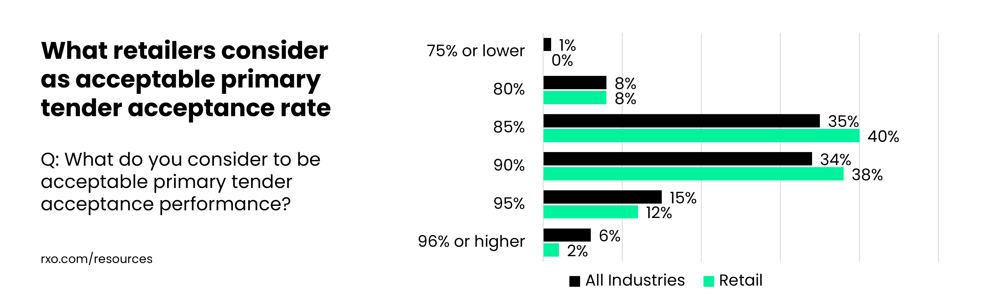 We asked retailers what they consider to be a reasonable primary tender acceptance rate from their carriers. Here’s what they had to say, and how it compares to average across all industries in the study.