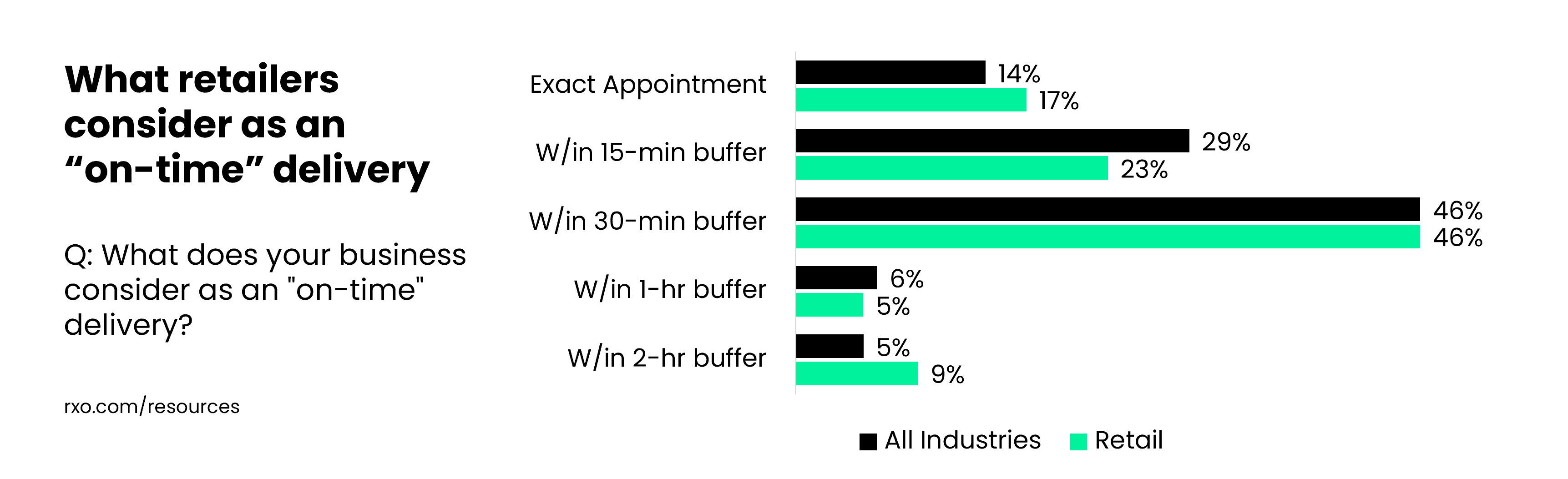 We asked retailers what they consider as an “on-time delivery” from their carriers. Here’s what they had to say, and how it compares to average across all industries in the study.