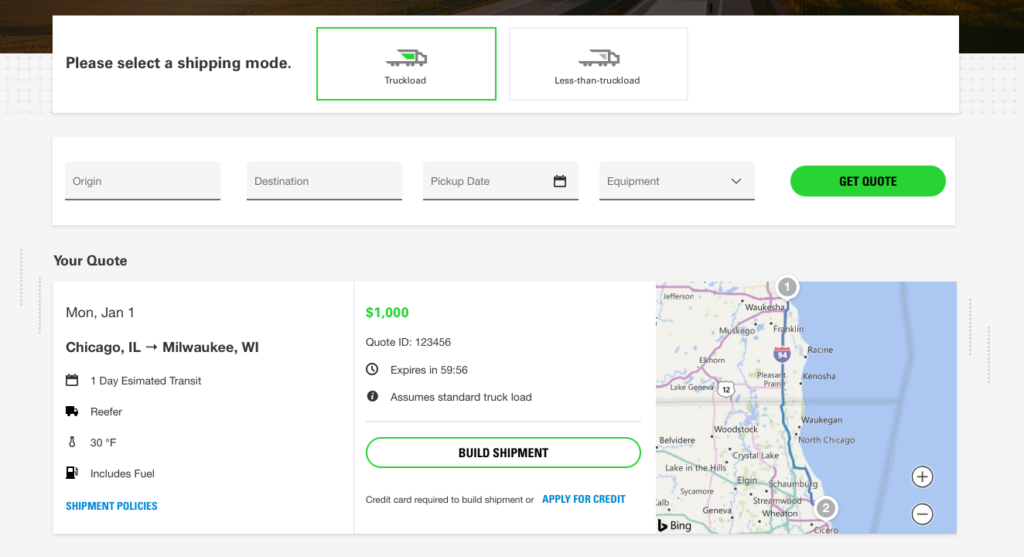 If you have enough credit available, you can build and book loads instantly (the Payment field in the Review section of your quote will tell you how much credit you are using).