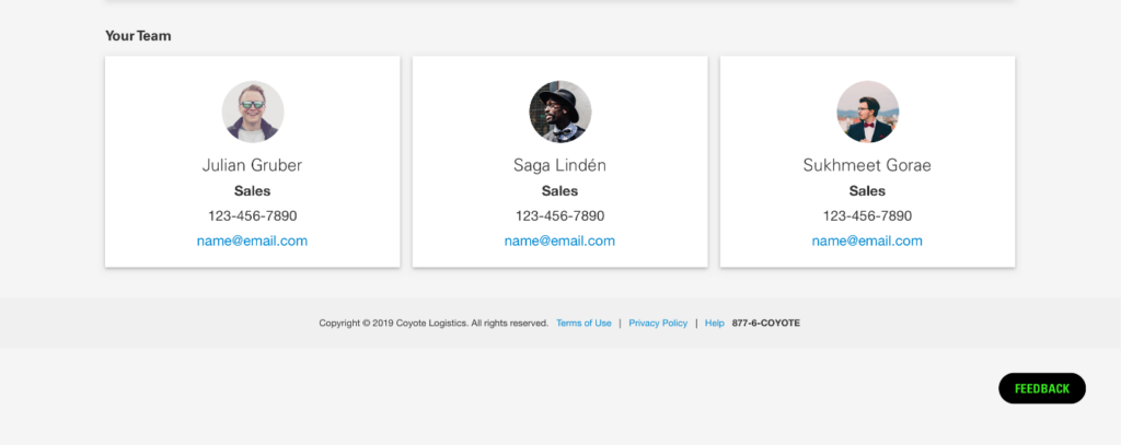 PRO TIP: While on the Load Details page, click the gear icon in the upper right corner, select the rep you wish to contact and ask your question for that specific load. You can also submit feedback by utilizing the Help section in the upper right dropdown menu.
